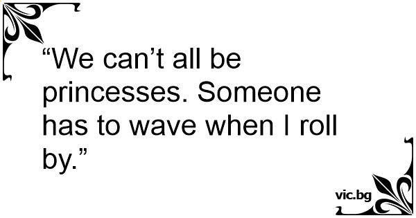 “We can’t all be princesses. Someone has to wave when I roll by.”