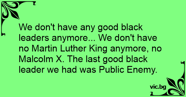 We don't have any good black leaders anymore... We don't have no Martin Luther King anymore, no Malcolm X. The last good black leader we had was Public Enemy.
