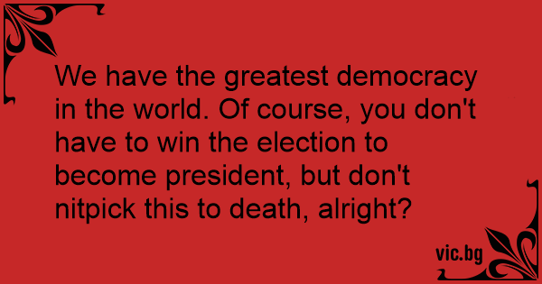 We have the greatest democracy in the world. Of course, you don't have to win the election to become president, but don't nitpick this to death, alright?