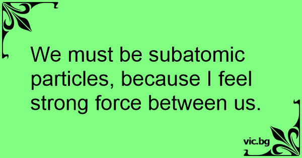 We must be subatomic particles, because I feel strong force between us.