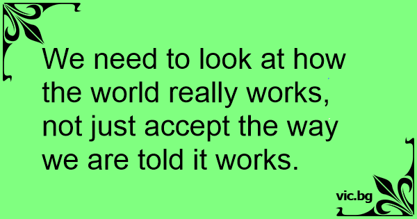 We need to look at how the world really works, not just accept the way we are told it works.