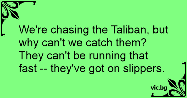 We're chasing the Taliban, but why can't we catch them? They can't be running that fast -- they've got on slippers.