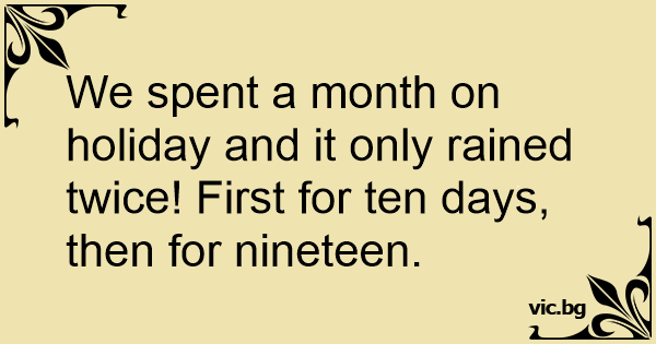 We spent a month on holiday and it only rained twice! First for ten days, then for nineteen.