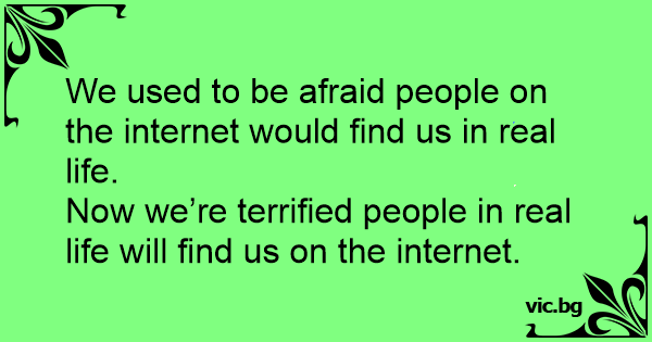 We used to be afraid people on the internet would find us in real life.