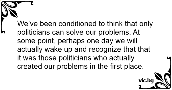 We’ve been conditioned to think that only politicians can solve our problems. At some point, perhaps one day we will actually wake up and recognize that that it was those politicians who actually created our problems in the first place.