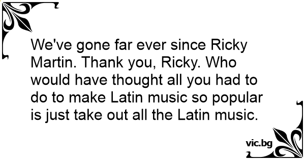 We've gone far ever since Ricky Martin. Thank you, Ricky. Who would have thought all you had to do to make Latin music so popular is just take out all the Latin music.