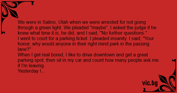 I went to court for a parking ticket. I pleaded insanity. I said, "Your honor, why would anyone in their right mind park in the passing lane?"