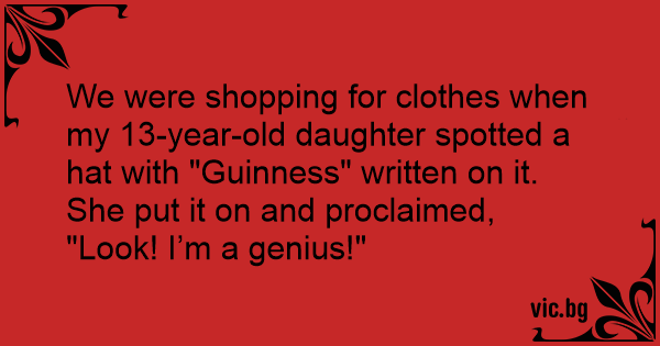 We were shopping for clothes when my 13-year-old daughter spotted a hat with "Guinness" written on it.