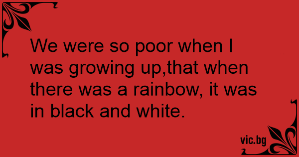 We were so poor when I was growing up,that when there was a rainbow, it was in black and white.