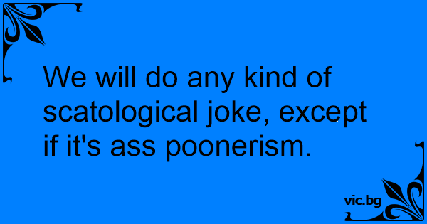 We will do any kind of scatological joke, except if it's аss poonerism.