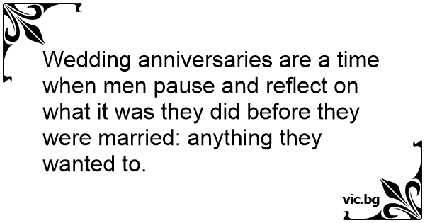 Wedding anniversaries are a time when men pause and reflect on what it was they did before they were married: anything they wanted to.
