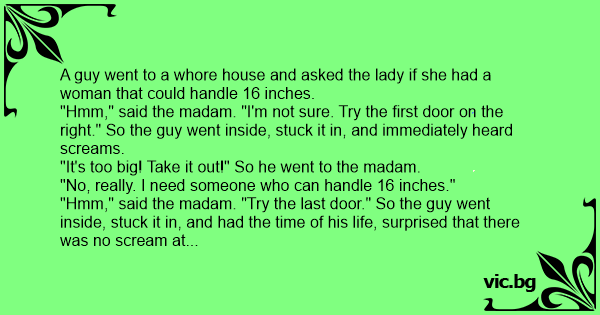 A guy went to a whоrе house and asked the lady if she had a woman that could handle 16 inches.