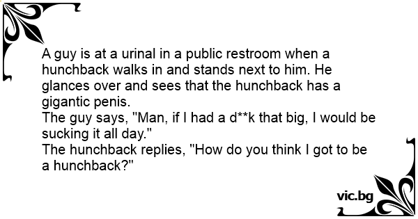 A guy is at a urinаl in a public restroom when a hunchback walks in and stands next to him. He glances over and sees that the hunchback has a gigantic реnis.