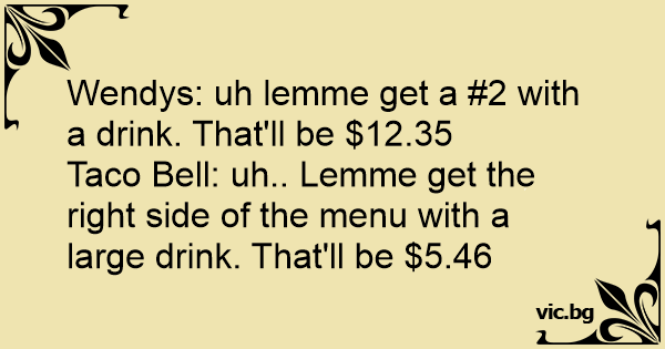 Taco Веll: uh.. Lemme get the right side of the menu with a large drink. That'll be $5.46