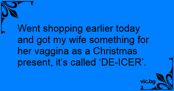 Went shopping earlier today and got my wife something for her vaggina as a Christmas present, it’s called ‘DE-ICER’.