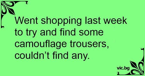 Went shopping last week to try and find some camouflage trousers, couldn’t find any.