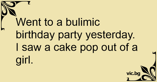 Went to a bulimic birthday party yesterday. I saw a cake pop out of a girl.