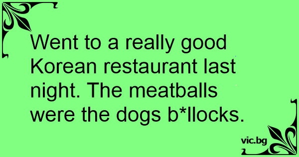 Went to a really good Korean restaurant last night. The meatballs were the dogs b*llocks.