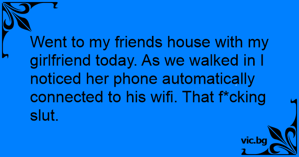 Went to my friends house with my girlfriend today. As we walked in I noticed her phone automatically connected to his wifi. That f*cking sluт.