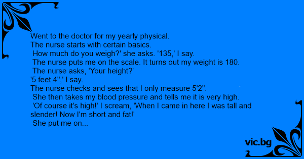 The nurse asks, 'Your height?'
