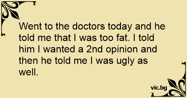 Went to the doctors today and he told me that I was too fат. I told him I wanted a 2nd opinion and then he told me I was ugly as well.