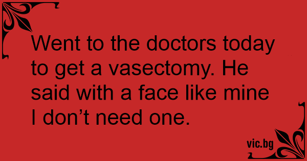 Went to the doctors today to get a vasectomy. He said with a face like mine I don’t need one.