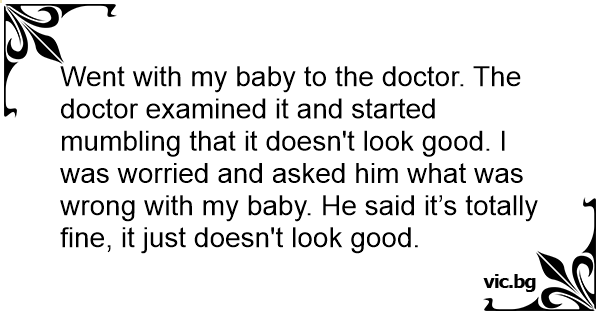 Went with my baby to the doctor. The doctor examined it and started mumbling that it doesn't look good. I was worried and asked him what was wrong with my baby. He said it’s totally fine, it just doesn't look good.