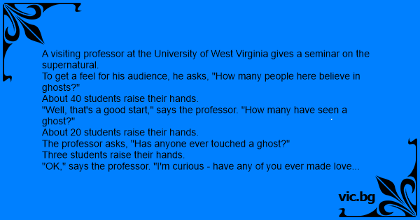 The professor says, "Thank you for being so honest. Now, please, tell us what it's like to have sеx with a ghost."