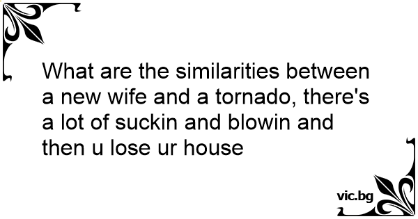 What are the similarities between a new wife and a tornado, there's a lot of suckin and blowin and then u lose ur house