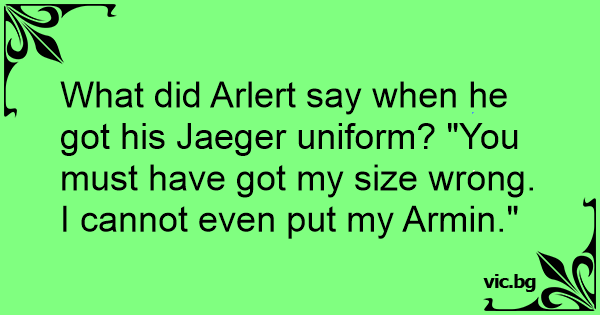 What did Arlert say when he got his Jaeger uniform? "You must have got my size wrong. I cannot even put my Armin."