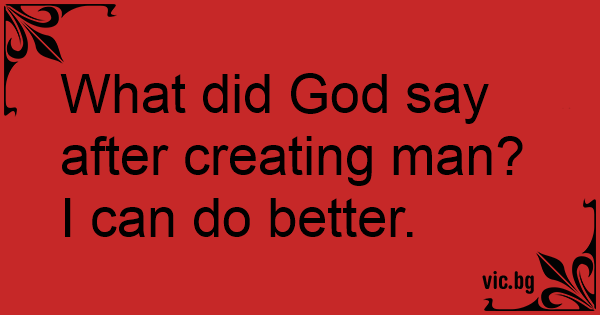 Co powiedział Bóg po stworzeniu mężczyzny? - Stać mnie na więcej.