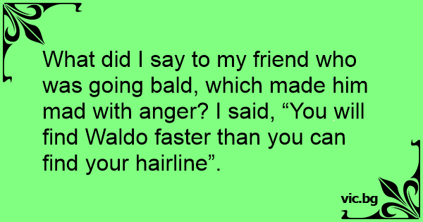 What did I say to my friend who was going bald, which made him mad with anger? I said, “You will find Waldo faster than you can find your hairline”.