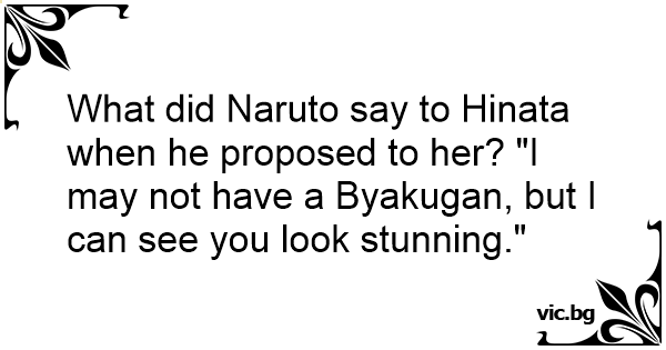 What did Naruto say to Hinata when he proposed to her? "I may not have a Byakugan, but I can see you look stunning."