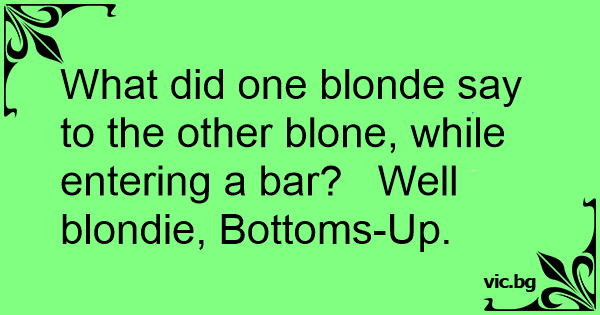 What did one blonde say to the other blone, while entering a bar? Well blondie, Bottoms-Up.