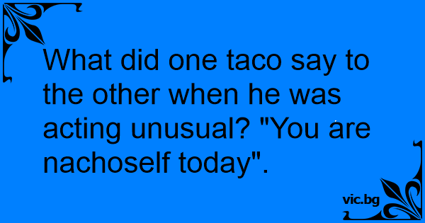 What did one taco say to the other when he was acting unusual? "You are nachoself today".