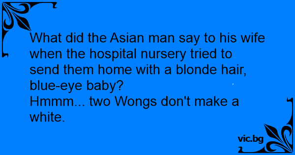 What did the Asian man say to his wife when the hospital nursery tried to send them home with a blonde hair, blue-eye baby?
