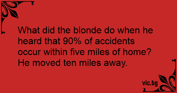 What did the blonde do when he heard that 90% of accidents occur within five miles of home? He moved ten miles away.