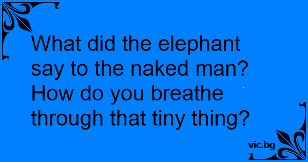 Hvad sagde elefanten til den nøgne man?– “Hvordan kan du trække vejret igennem den lille ting?”