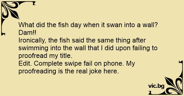 Ironically, the fish said the same thing after swimming into the wall that I did upon failing to proofread my title.