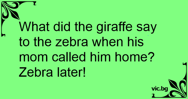 What did the giraffe say to the zebra when his mom called him home? Zebra later!