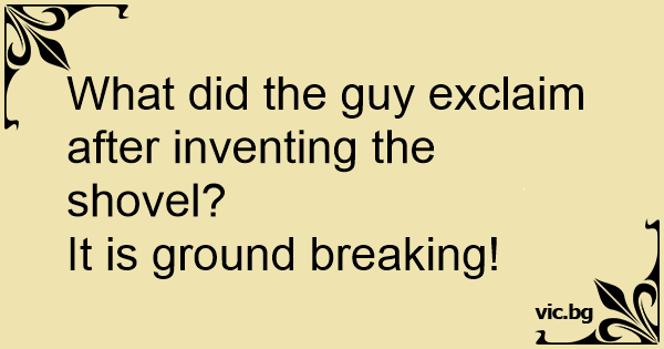 What did the guy exclaim after inventing the shovel?