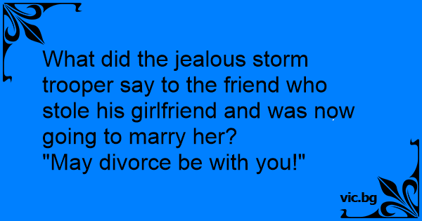 What did the jealous storm trooper say to the friend who stole his girlfriend and was now going to marry her?