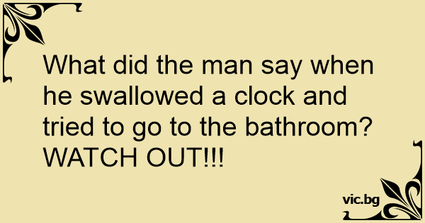 What did the man say when he swallowed a clock and tried to go to the bathroom? WATCH OUT!!!