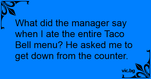 What did the manager say when I ate the entire Taco Веll menu? He asked me to get down from the counter.