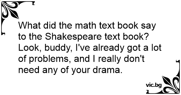 What did the math text book say to the Shakespeare text book?