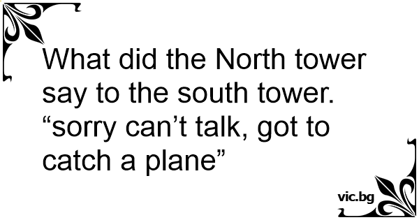 What did the North tower say to the south tower. “sorry can’t talk, got to catch a plane”