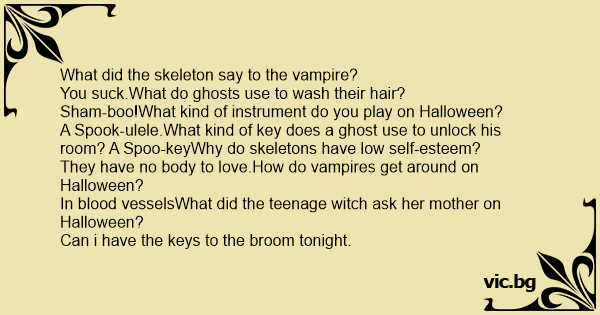 A Sроок-ulele.What kind of key does a ghost use to unlock his room? A Spoo-keyWhy do skeletons have low self-esteem?