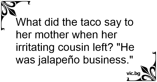 What did the taco say to her mother when her irritating cousin left? "He was jalapeño business."