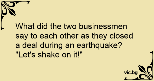 What did the two businessmen say to each other as they closed a deal during an earthquake?