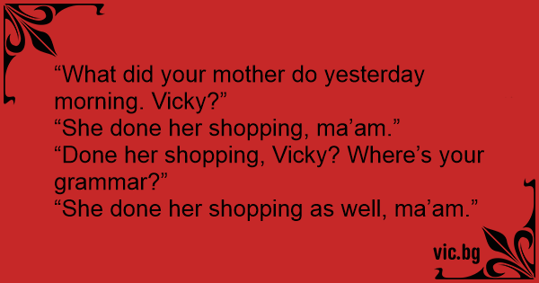 “What did your mother do yesterday morning. Vicky?”